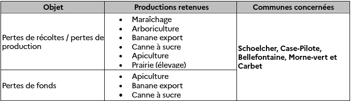 Par arrêté n° R02-2026-04-09-00001, publié le 13 avril 2026, M. le Préfet de Martinique a reconnu le sinistre relatif à la « sécheresse de juin à septembre 2025 » ayant impacté les productions et les communes suivantes :